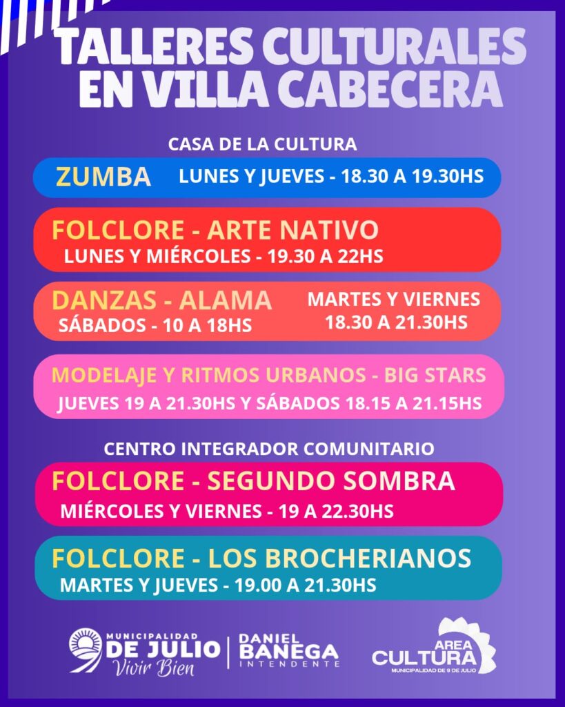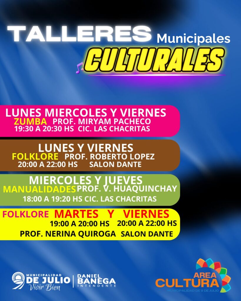 La Municipalidad de 9 de Julio, a través del Área de Cultura, dio a conocer la variada agenda de talleres culturales que se lleva adelante durante este 2026, con propuestas gratuitas destinadas a vecinos y vecinas de todas las edades.