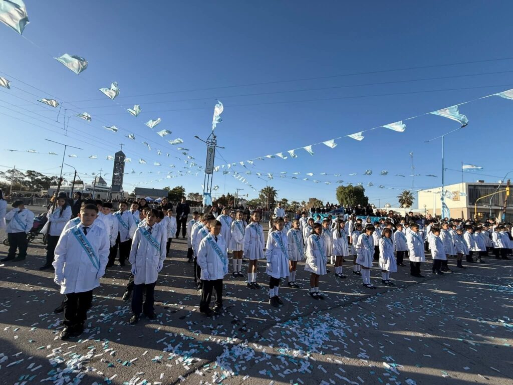 Este lunes por la tarde, la Plaza Independencia de la Villa Cabecera se vistió de celeste y blanco para recibir a las niñas y niños de 4° grado de las distintas escuelas del departamento, quienes realizaron la tradicional Promesa de Lealtad a la Bandera Argentina, rodeados del acompañamiento de sus familias, docentes, vecinos y el municipio.