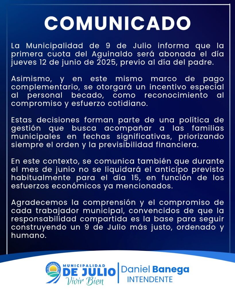 Comunicado de la municipalidad de 9 de julio