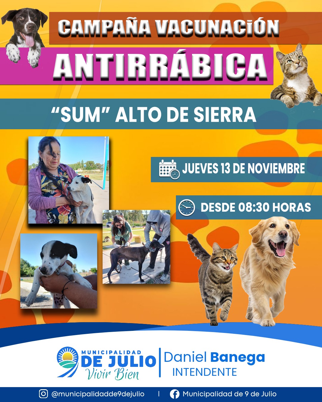 Este jueves 13 de noviembre se llevará adelante un nuevo operativo de vacunación antirrábica gratuita, destinado a perros y gatos. El operativo tendrá lugar en el SUM de Alto de Sierra, a partir de las 08:30 horas.