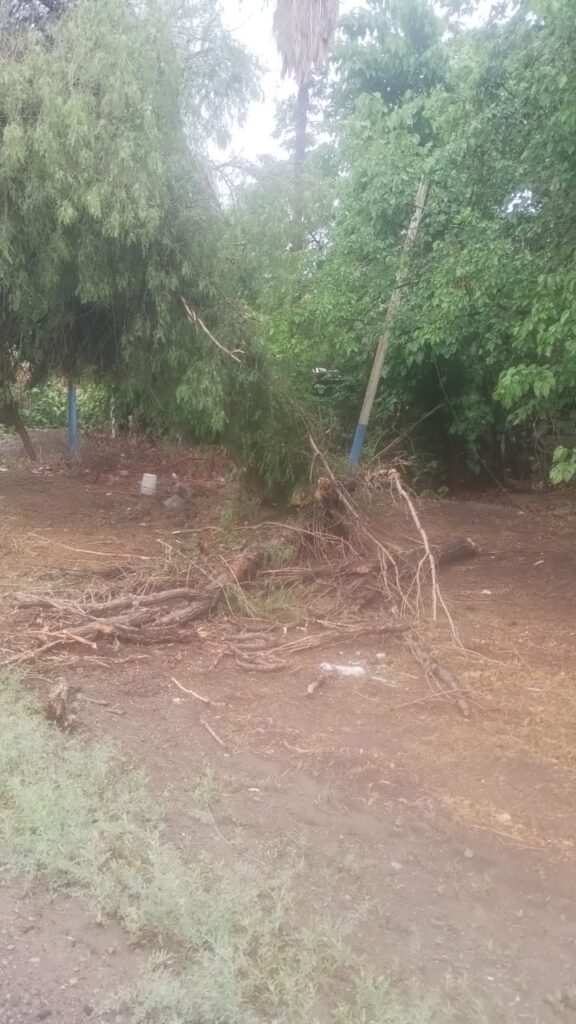 En la ruta 20 km 9, la caída de arboles afecto el tendido eléctrico para lo que junto a equipos del municipio , Policia de San Juan y Vialidad Nacional, se pudo liberar la ruta rápidamente.