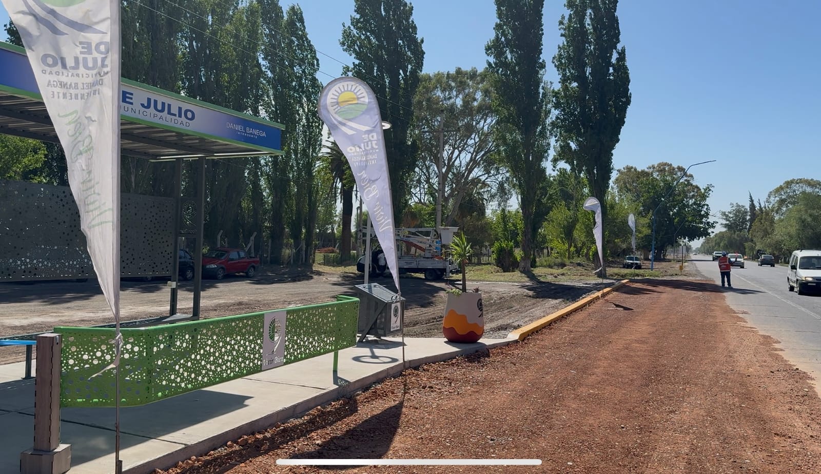 Más seguridad para la comunidad educativa: 9 de Julio inauguró dársenas y paradas de colectivo frente a un colegio que está sobre la Ruta N°20