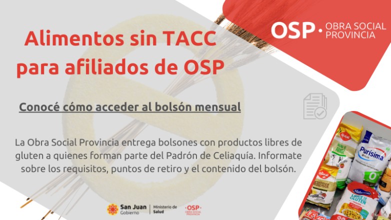 La Obra Social Provincia informa sobre los requisitos, puntos de retiro y el contenido del bolsón con productos libres de gluten.