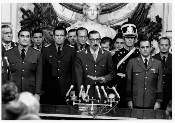 El 24 de marzo de 1976, la junta militar de Videla, Massera y Agosti derrocaron a la presidente Maria Estela, Martinez de Peron, el General había fallecido y el peso había recaído en esta inestable y débil señora, secundaria por nefastos personajes como el “Brujo” Lopez Rega, detras se movía en las sombras una maquinaria que se convertiría en la más sangrienta de nuestra historia.